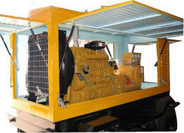 高昌柴油发电机组/移动柴油发电机组设计独具创新,机动性高、重心低、制动安全、制造精良、外形美观。 高昌拖车车架采用槽梁焊接成框架结构,节点选择合理、强度高、刚性好;同时装有钢板弹簧悬架结构;拖车采用高度可调节插销式牵引架,适用于各种高度牵引车;采用圆形钢管焊接直通式车轴,结构紧凑,安全可靠;车架四角设有机械式支撑装置,配备惯性行车制动、驻车制动和脱离应急制动,确保机组在各种状况下的安全;车架前端设有支撑轮,具备承受机组垂直载荷的功能的同时还具备导向功能;整车配备转向和刹车指示灯,同时装有尾灯标准插头